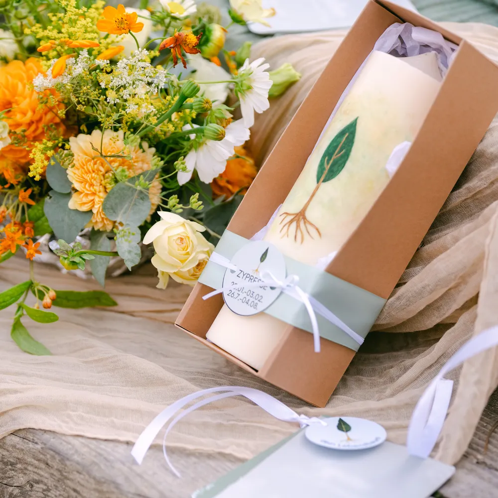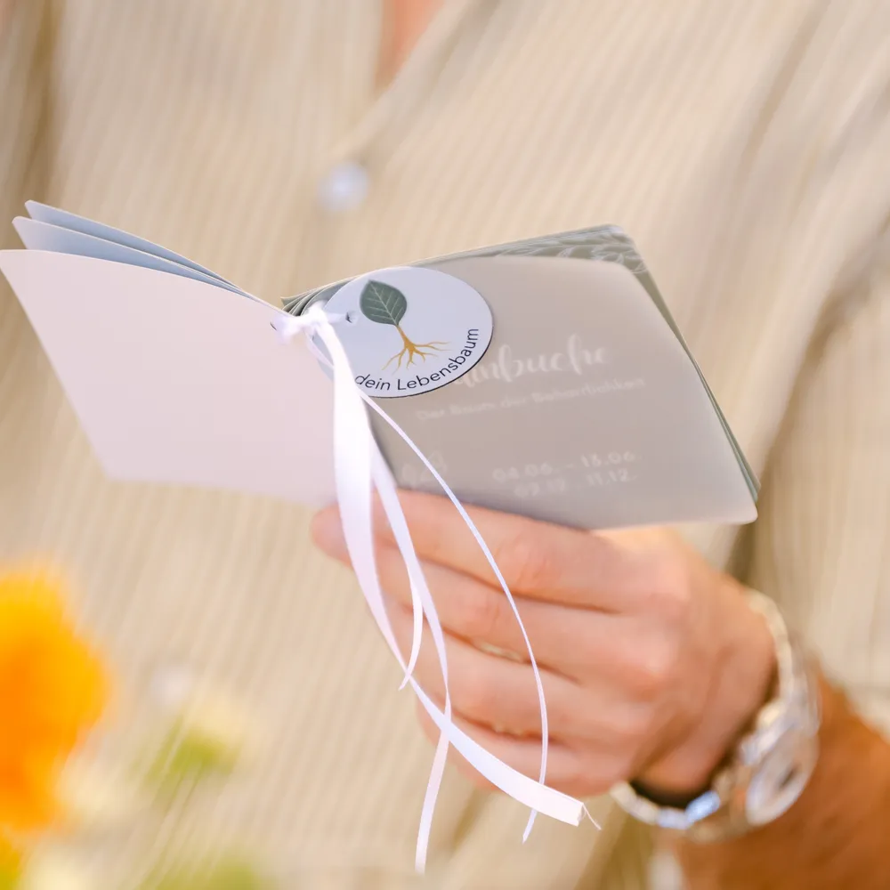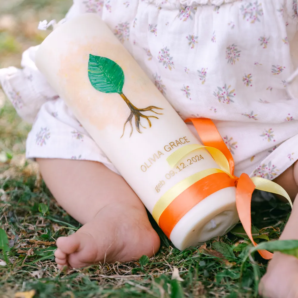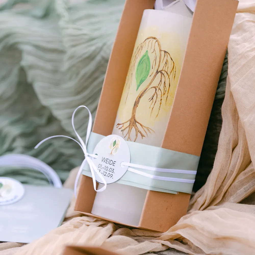 Zu jeder Taufkerze gibt es ein edles Booklet, in welchem über die Besonderheiten, positive und auch nicht so positive Eigenschaften, passende Segenswünsche, passende Berufe informiert wird. Außerdem findest du darin eine kleine Duftbeschreibung der Kerze.
