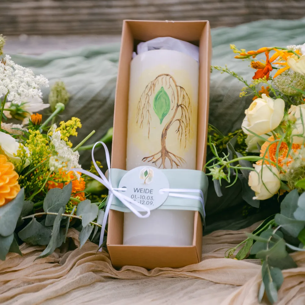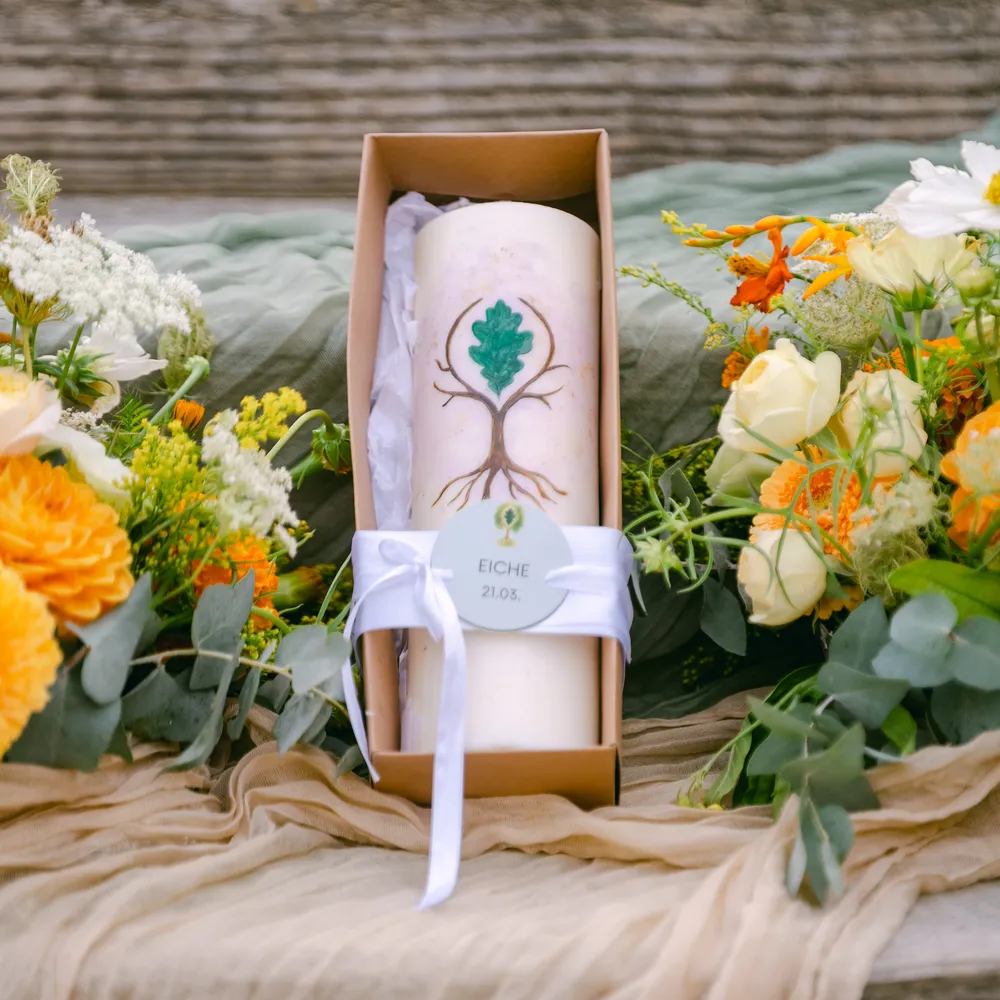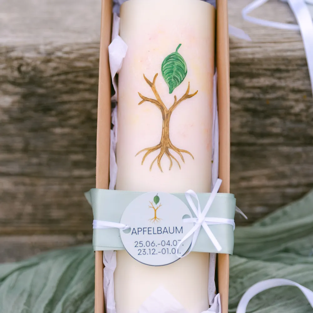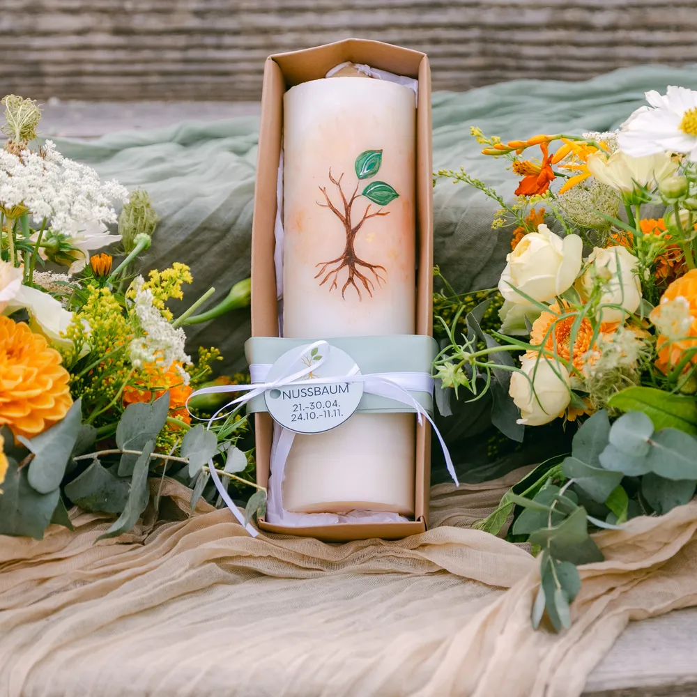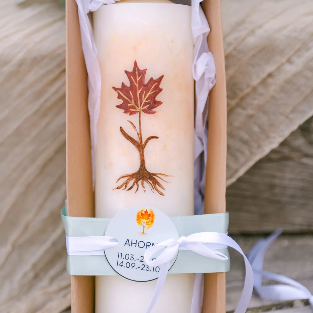 Jeder unserer Baumkreiszeichen Kerzen werden mit dem ätherischen Öl des jeweiligen Baumes versetzt. Dh man sieht den Baum nicht nur optisch auf der Kerze, sondern wird auch noch sanft mit seinem Duft umhüllt.