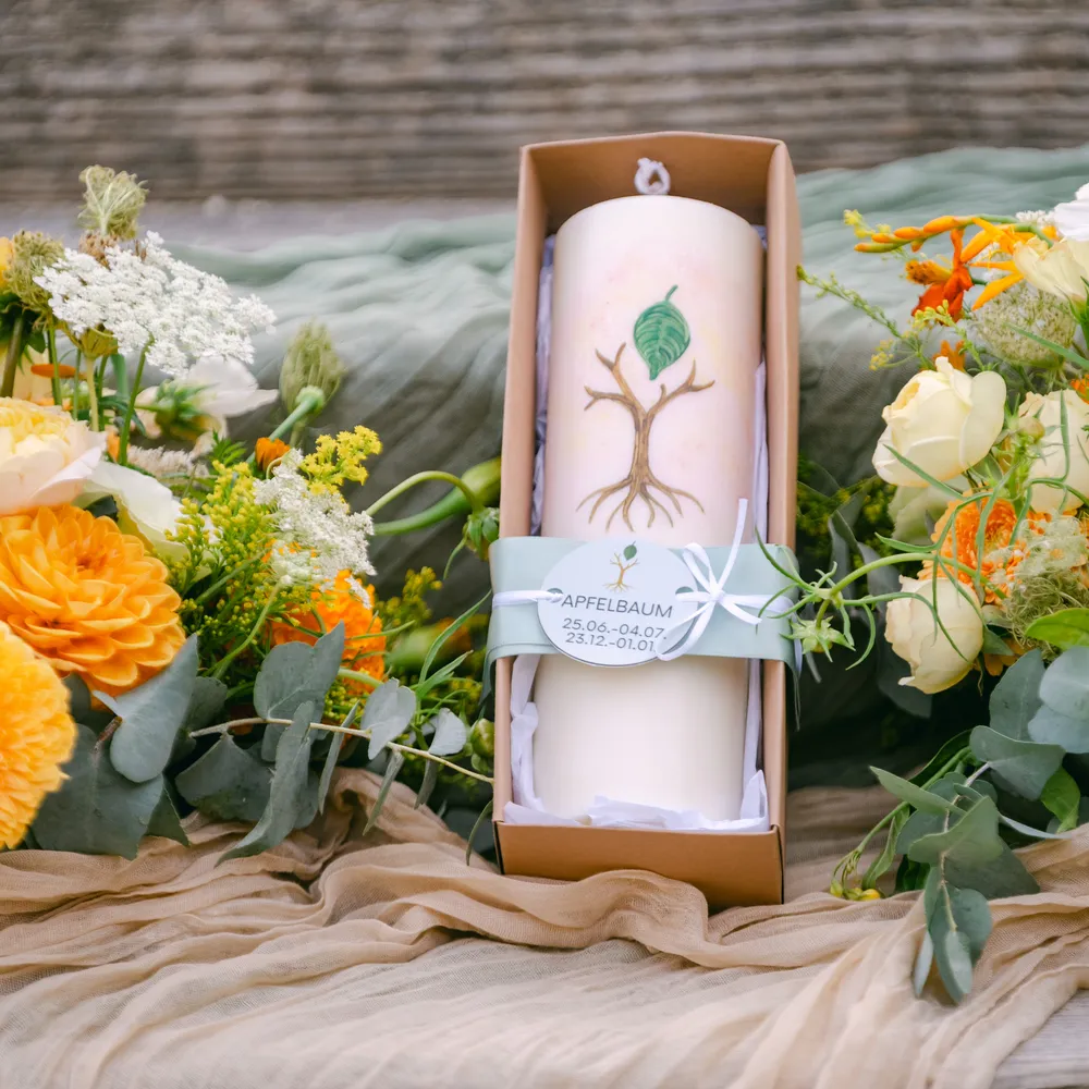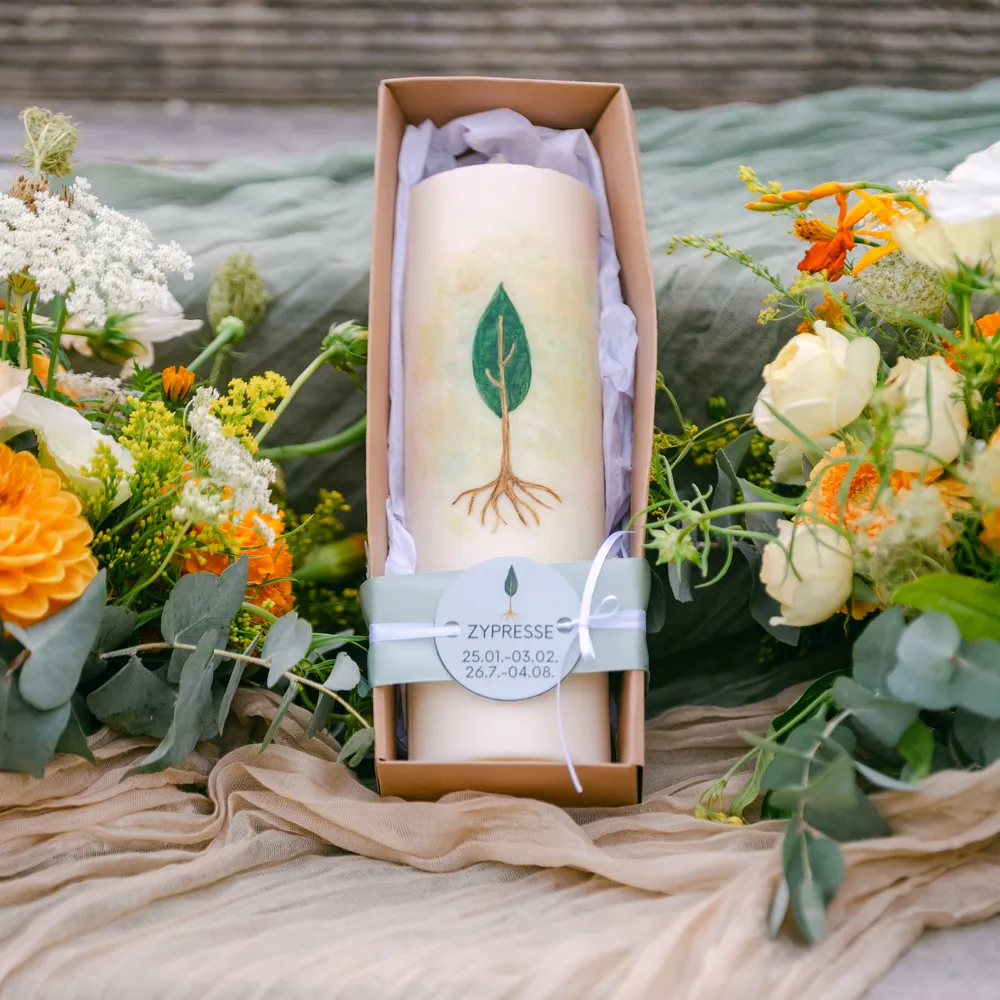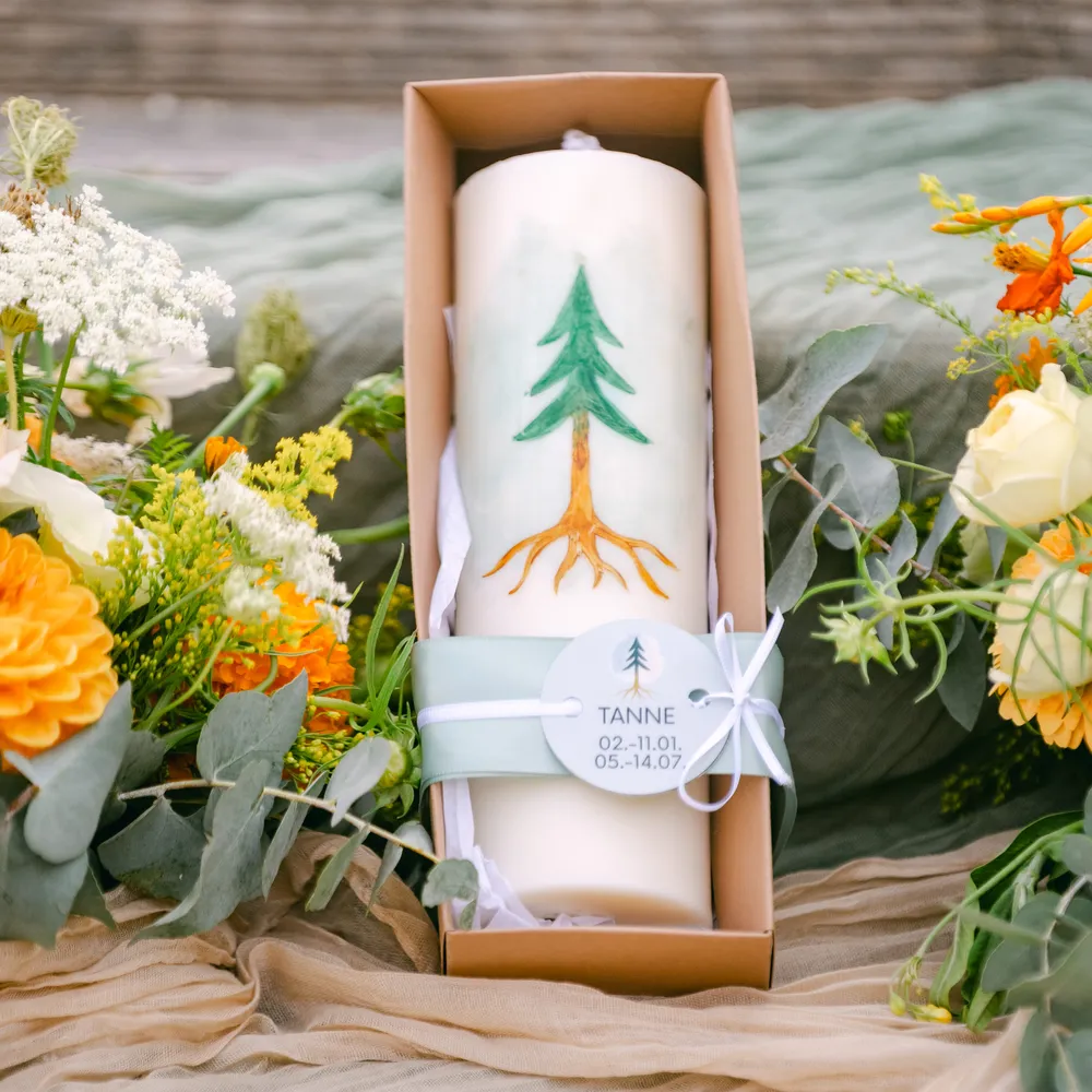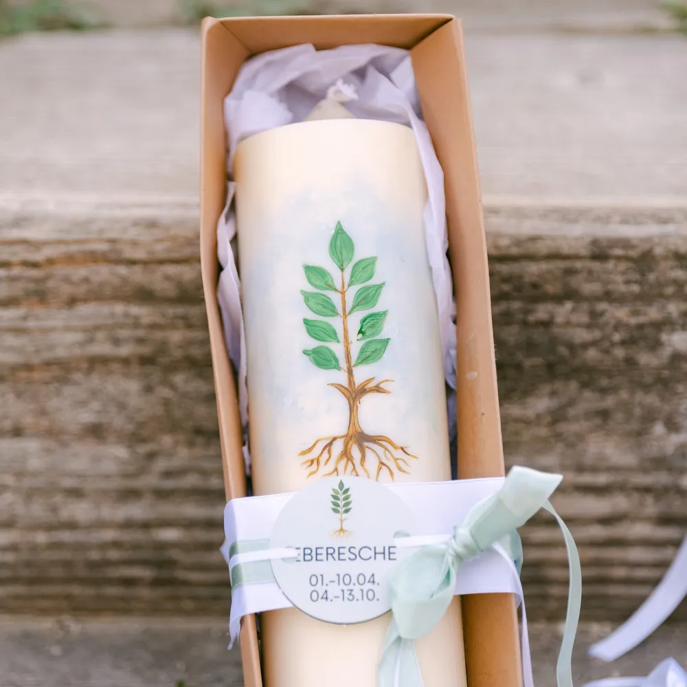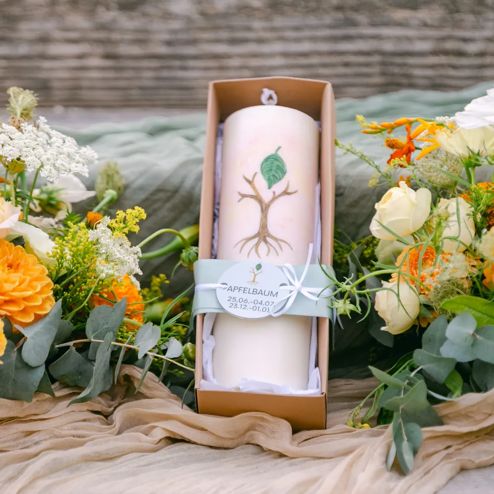 Jeder unserer Baumkreiszeichen Kerzen werden mit dem ätherischen Öl des jeweiligen Baumes versetzt. Dh man sieht den Baum nicht nur optisch auf der Kerze, sondern wird auch noch sanft mit seinem Duft umhüllt.